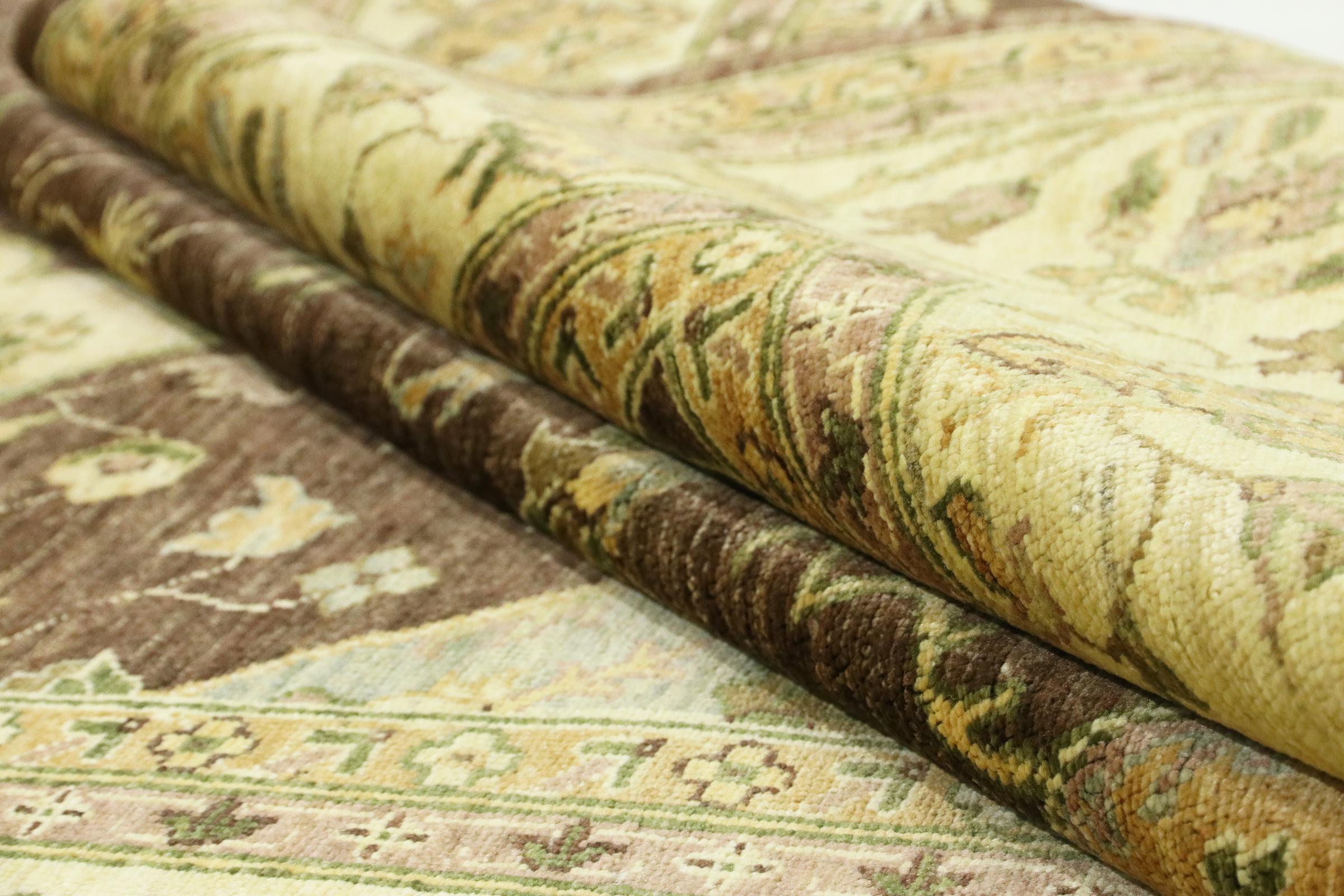 Ce tapis Ziegler Farahan est fait principalement avec de la laine de haute qualité, noué à la main au pakistan. Les méthodes de traitement utilisées permettent de donner naissance à une splendide patine moderne et de style ancien, avec des couleurs discrètes.