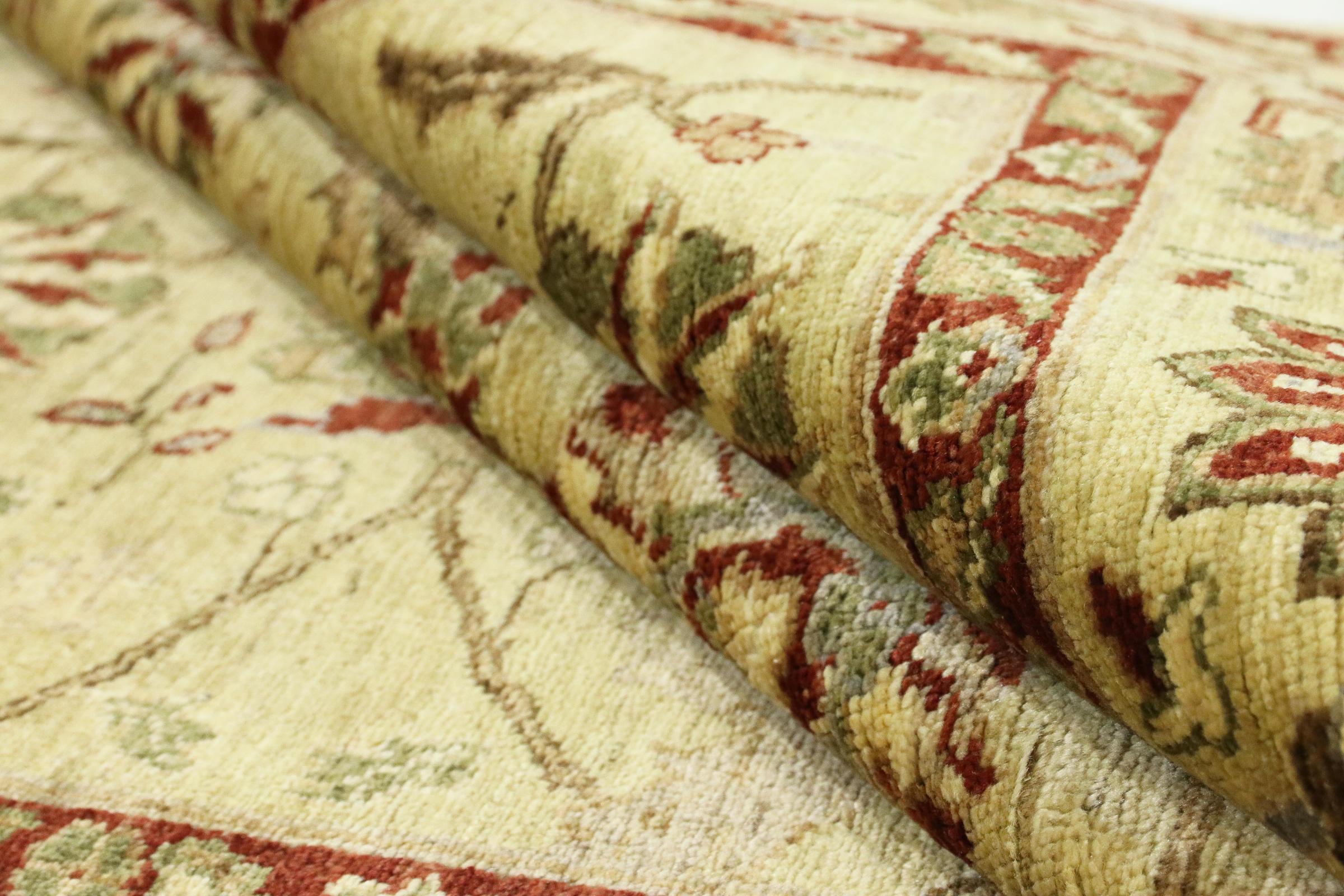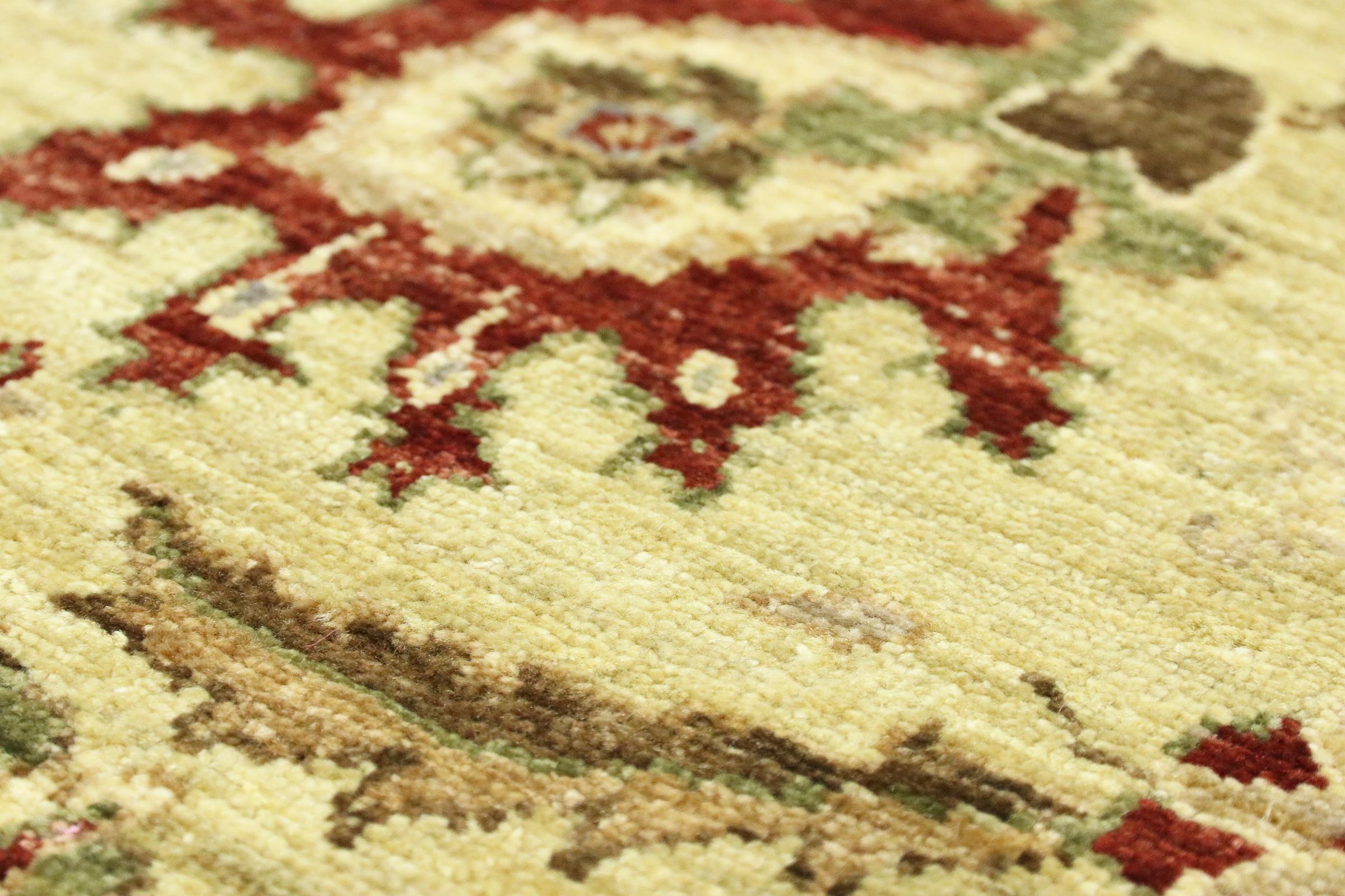 Ce tapis Ziegler Farahan est fait principalement avec de la laine de haute qualité, noué à la main au pakistan. Les méthodes de traitement utilisées permettent de donner naissance à une splendide patine moderne et de style ancien, avec des couleurs discrètes.