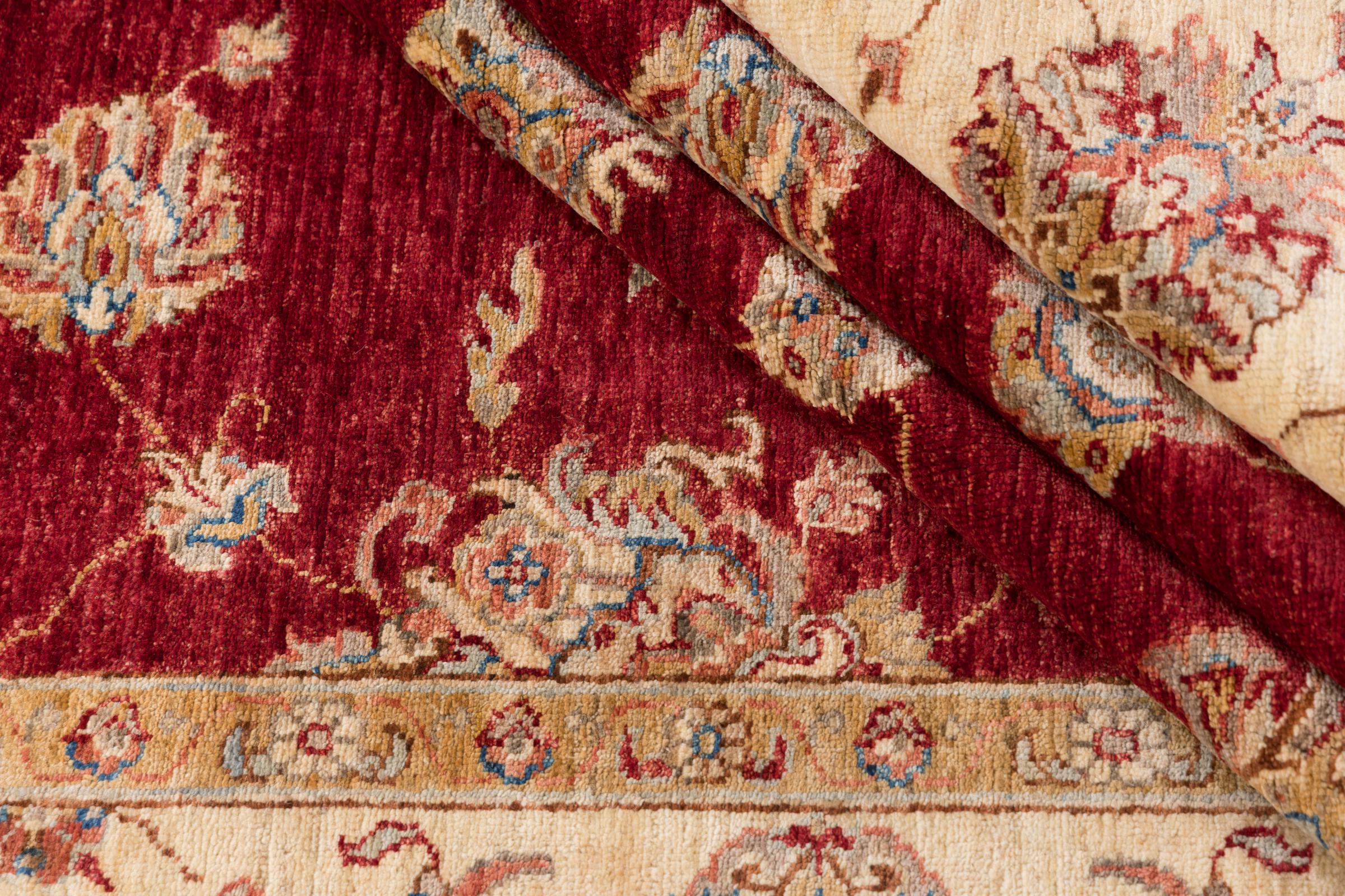 Ce tapis Ziegler Farahan est fait principalement avec de la laine de haute qualité, noué à la main au pakistan. Les méthodes de traitement utilisées permettent de donner naissance à une splendide patine moderne et de style ancien, avec des couleurs discrètes.