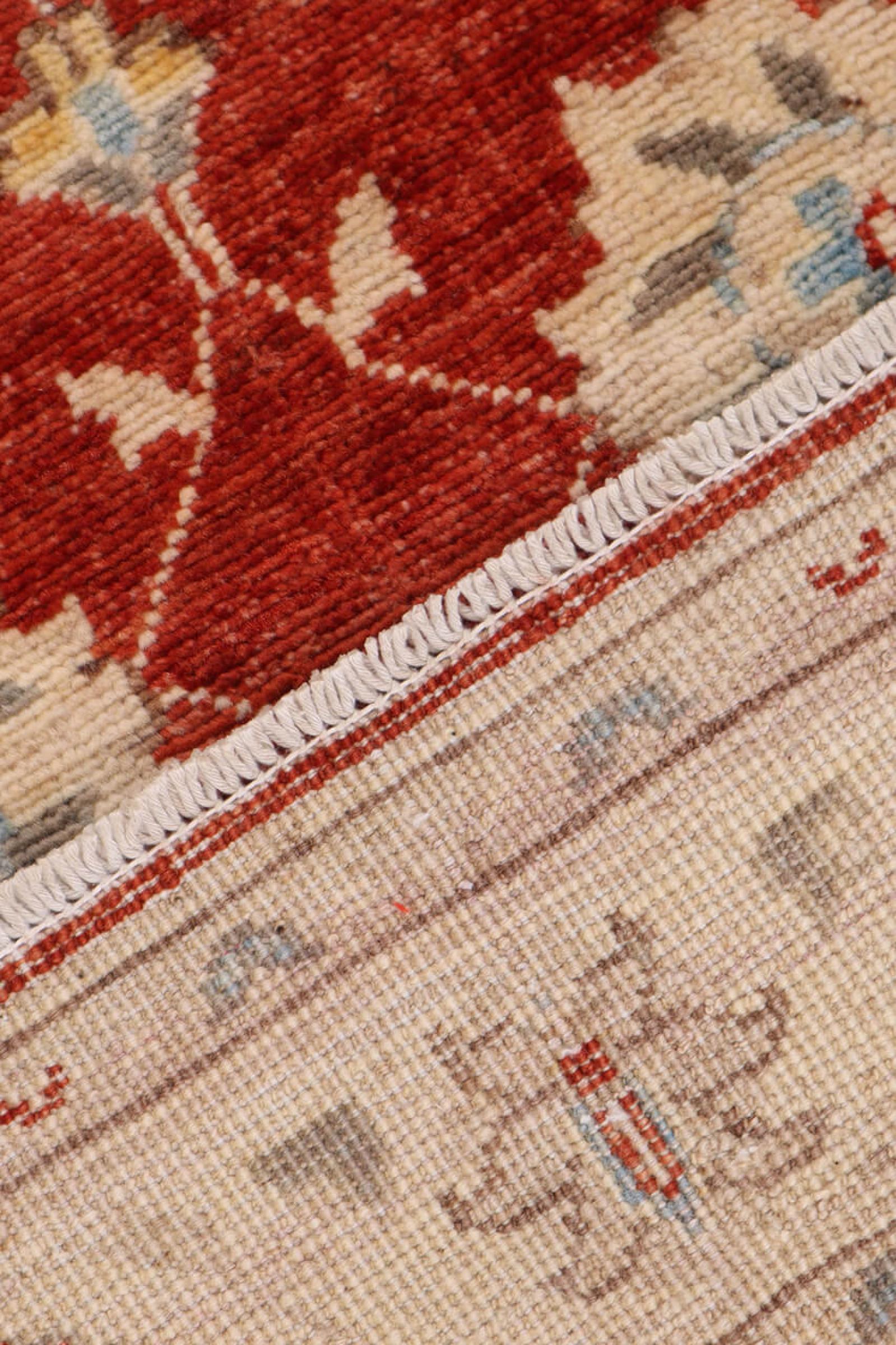Ce tapis est fait de laine de mouton filée à la main de la plus haute qualité. En Iran (ancienne Perse), en Afghanistan et au Pakistan notamment, la laine est encore filée à la main avant que ne commence le nouage proprement dit du tapis. La laine a fait ses preuves en tant que matière naturelle et extrêmement résistante au fil des siècles. Il a notamment des propriétés antisalissures et d'isolation thermique. En même temps, la laine est incomparablement douce et a un éclat naturel.